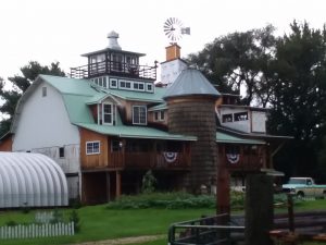 This was a fun project at Belvidere, IL last week. I installed a new A802 on top of this Frank Lloyd Wright inspired barn. Windmill is sitting at 60′ above ground and will pump from a 2″ sand point inside the barn. Inside of this barn is absolutely fantastic! Had a 90 min window between downpours from 6-7:30am. Got job done with 5 min to spare!