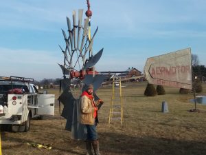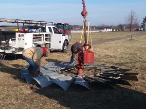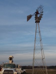 Hey if you’re ever in the Sycamore, IL area, check out Kuiper’s Family Farm (Maple Park, IL). We recently installed a BIG 14′ x 47′ Aermotor E702 Windmill there. The farm has all sorts of fun family activities …and there are three Windmills on the property! Next Spring the Kuiper’s plan to develop a neat water feature with the BIG windmill pumping from a pond. The motor is set on the long stroke (13-1/2″) and the complete head assembly weighs 1700lb.