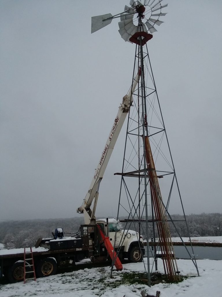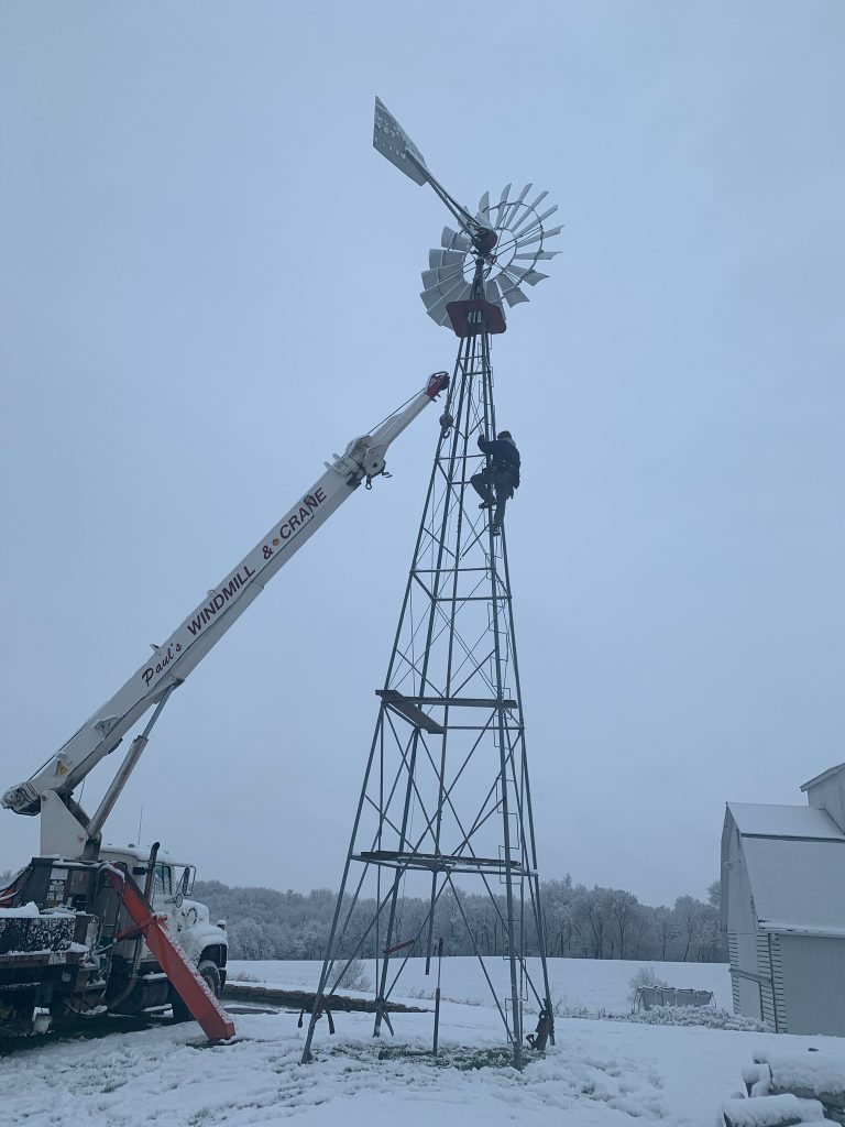 Work on this 10′ B702 x 40′ Aermotor continued despite the 3″ snowfall morning of April 16, 2020. This mill has pumped virtually 24/7 since it was installed in 2011. Leathers have been replaced 3 times.