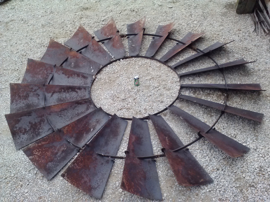 I usually have old rusty windmill wheels for sale for wall decorations. Please contact me for current availability & prices. Paul 217-897-6699rusty half wheel
