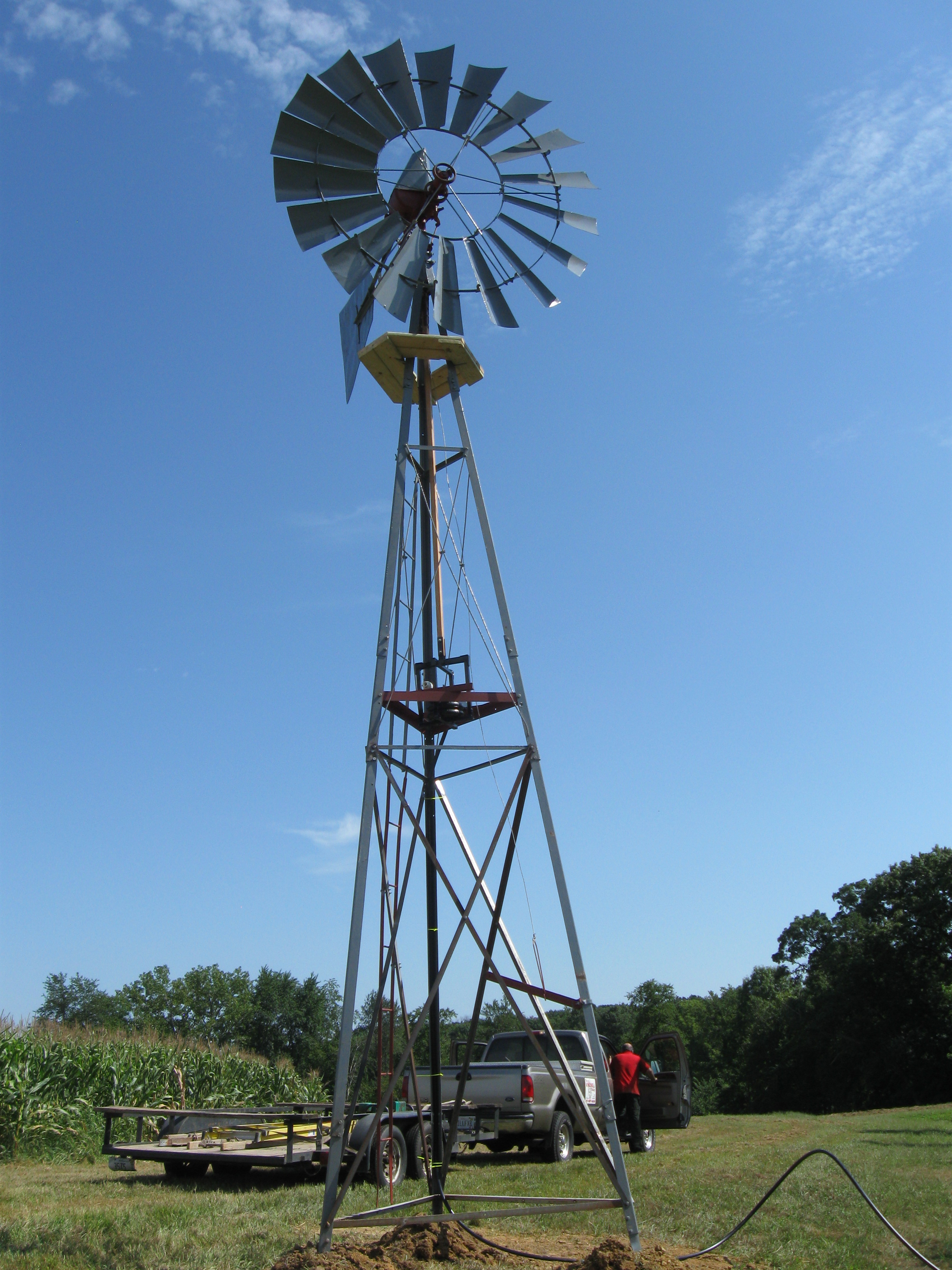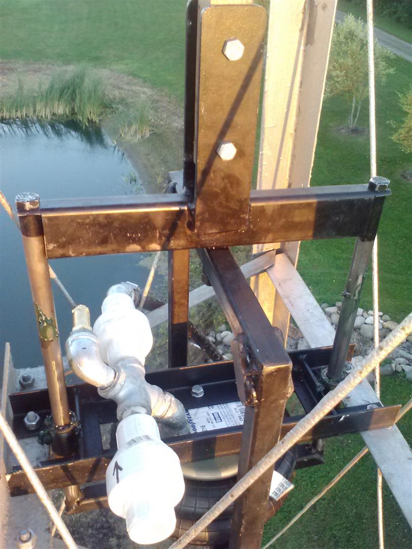 Pond aerators are used in conjunction with traditional windmills, weighted line, and diffusers to help reduce or eliminate excessive algae, provide oxygen for fish, and keep ponds from freezing over in winter. These units are heavy duty and reliable and pump anytime the windmill is turning. I can supply a complete package including Aerator, diffuser(s), backflow preventor, weighted line, and clamps, that best fits your desired results. Installation available.