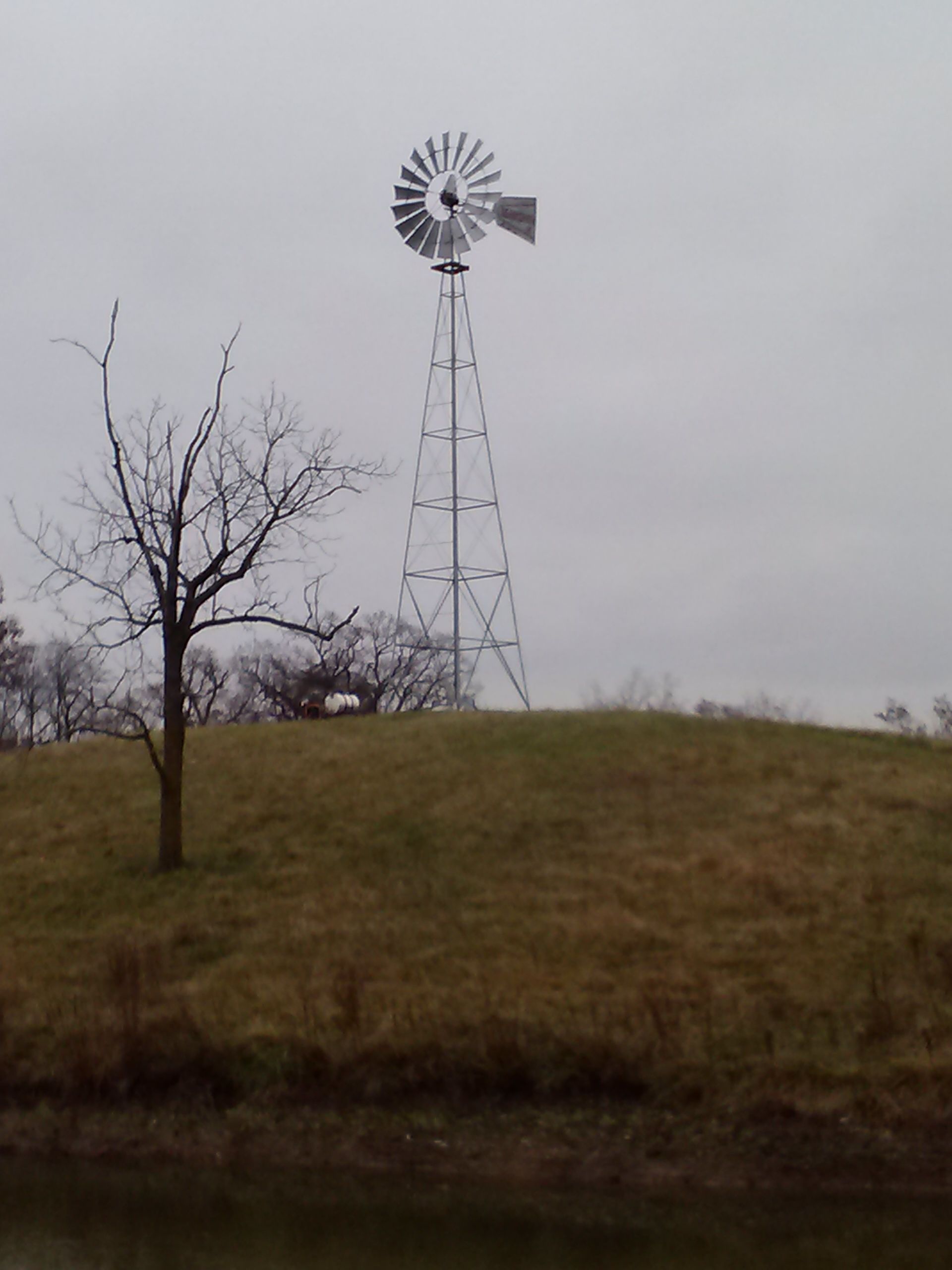 Pond filling with large windmill-Clinton, Illinois by Paul Behrends | Feb 17, 2014 | Windmill Service This 12′ D702 Aermotor windmill atop 47′ tower pumps constantly to keep a 2 acre pond full. We are using a 2″ open top cylinder set about 200′ down. Mill is on a pretty good hill above all wind obstructions. Does nice job of keeping pond full.