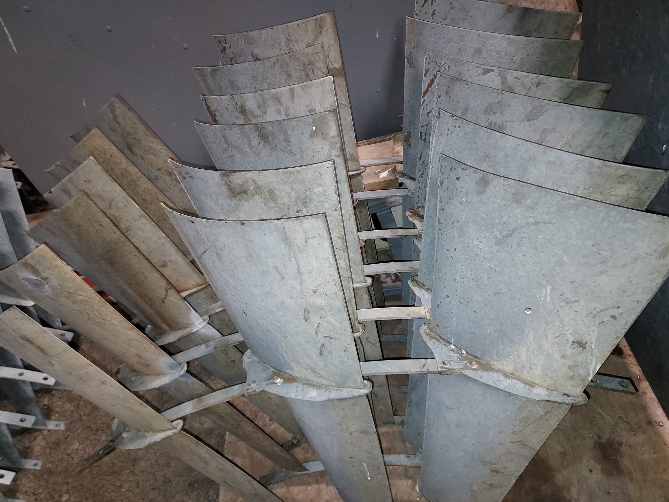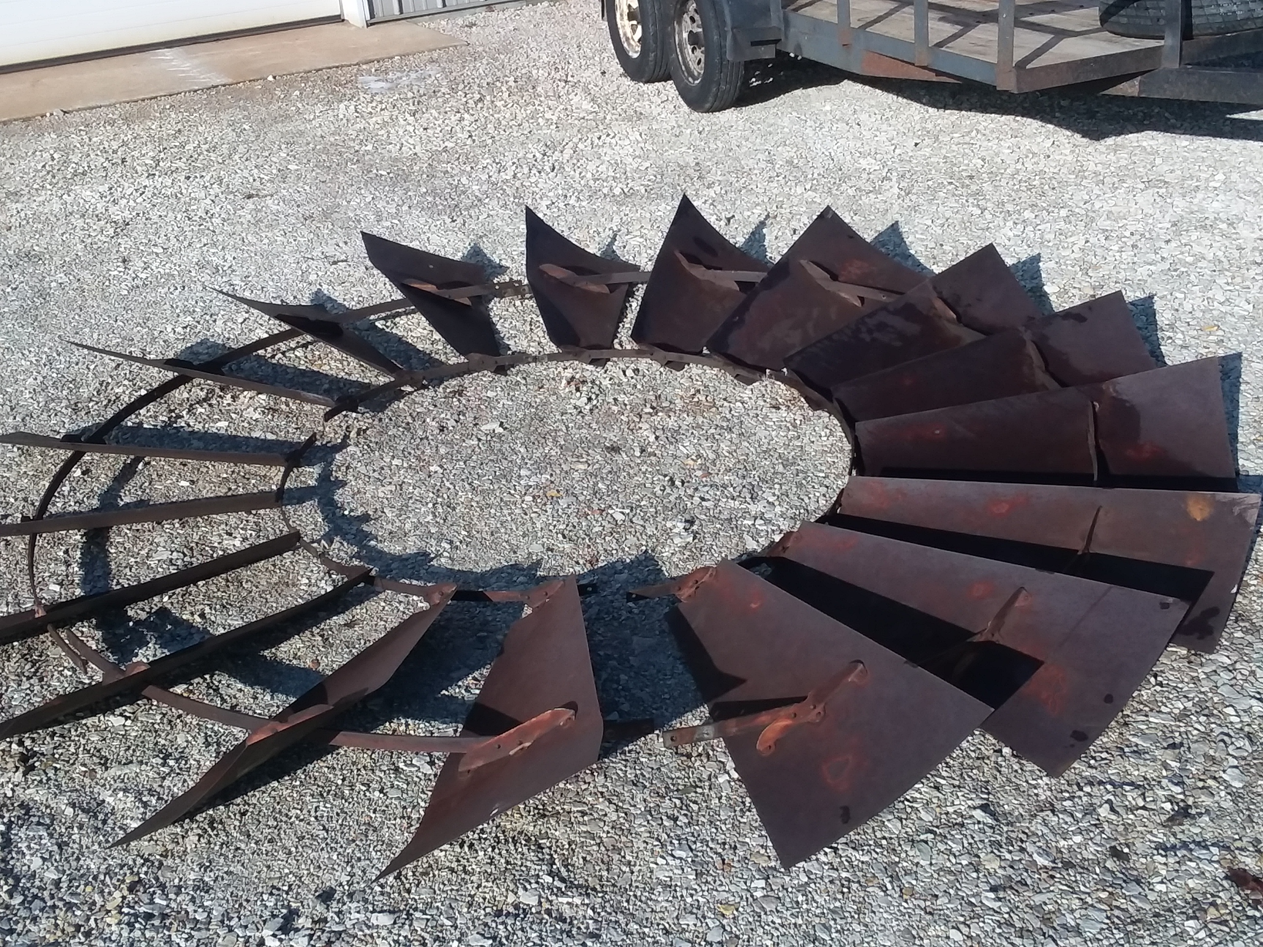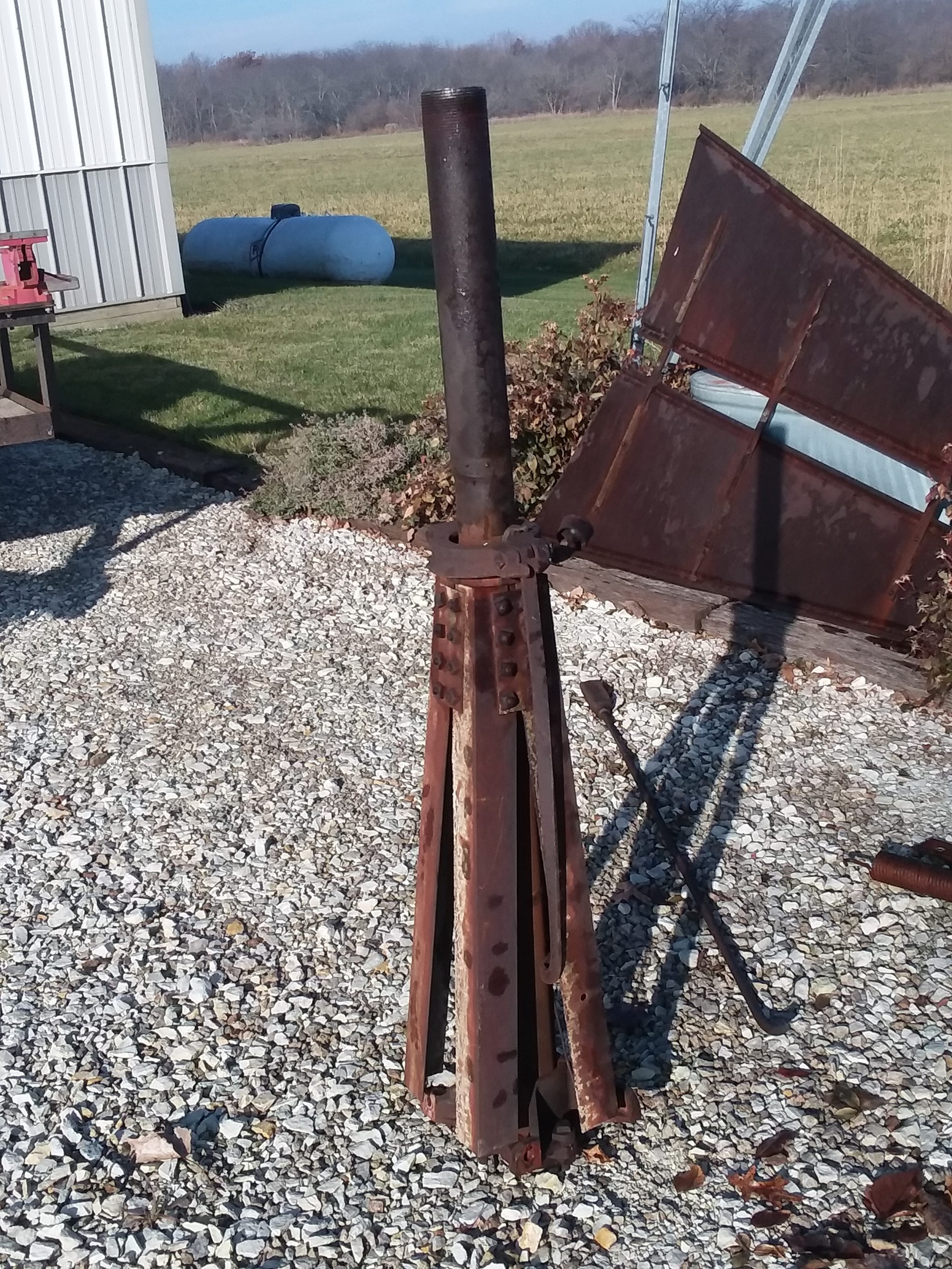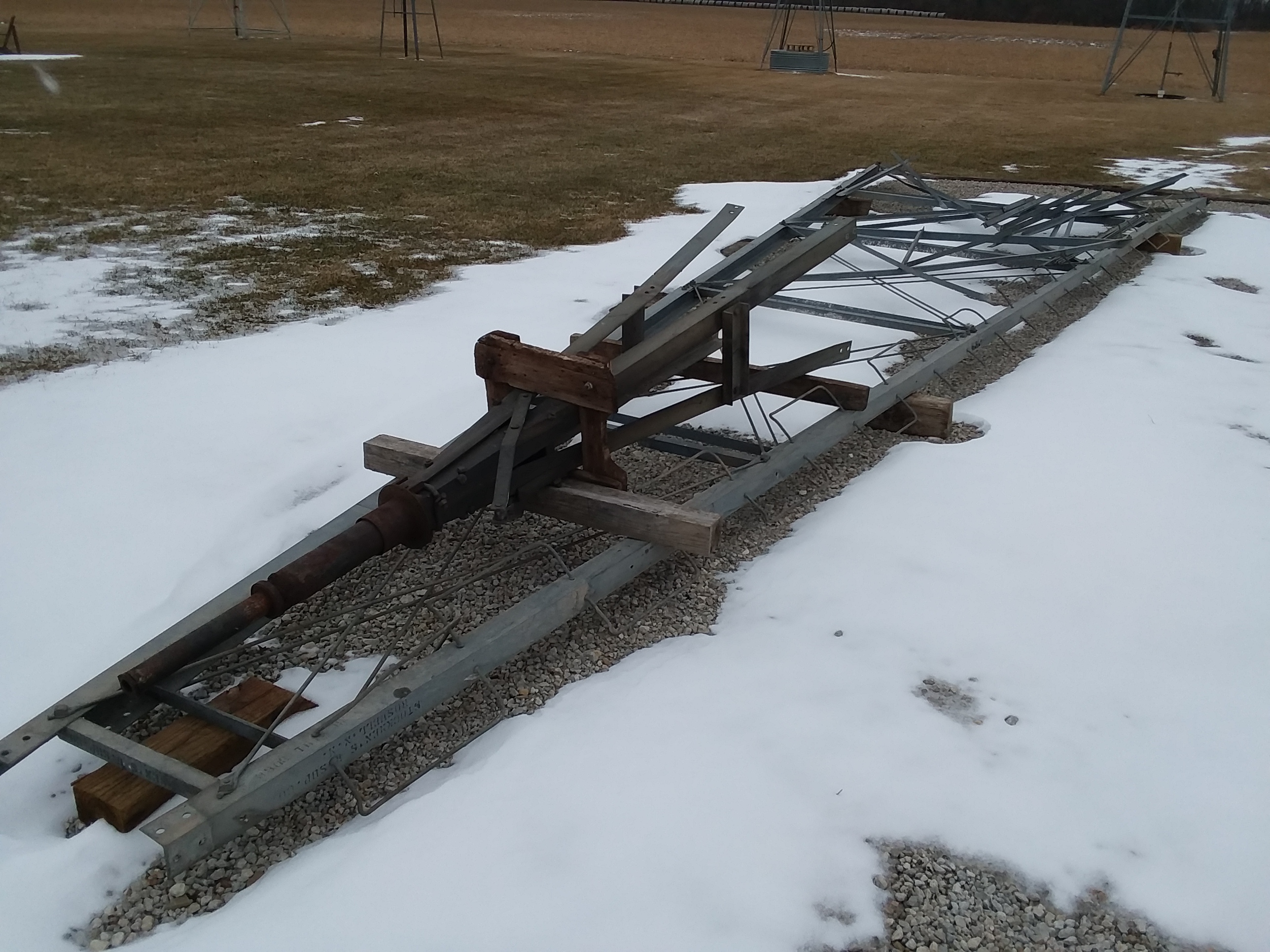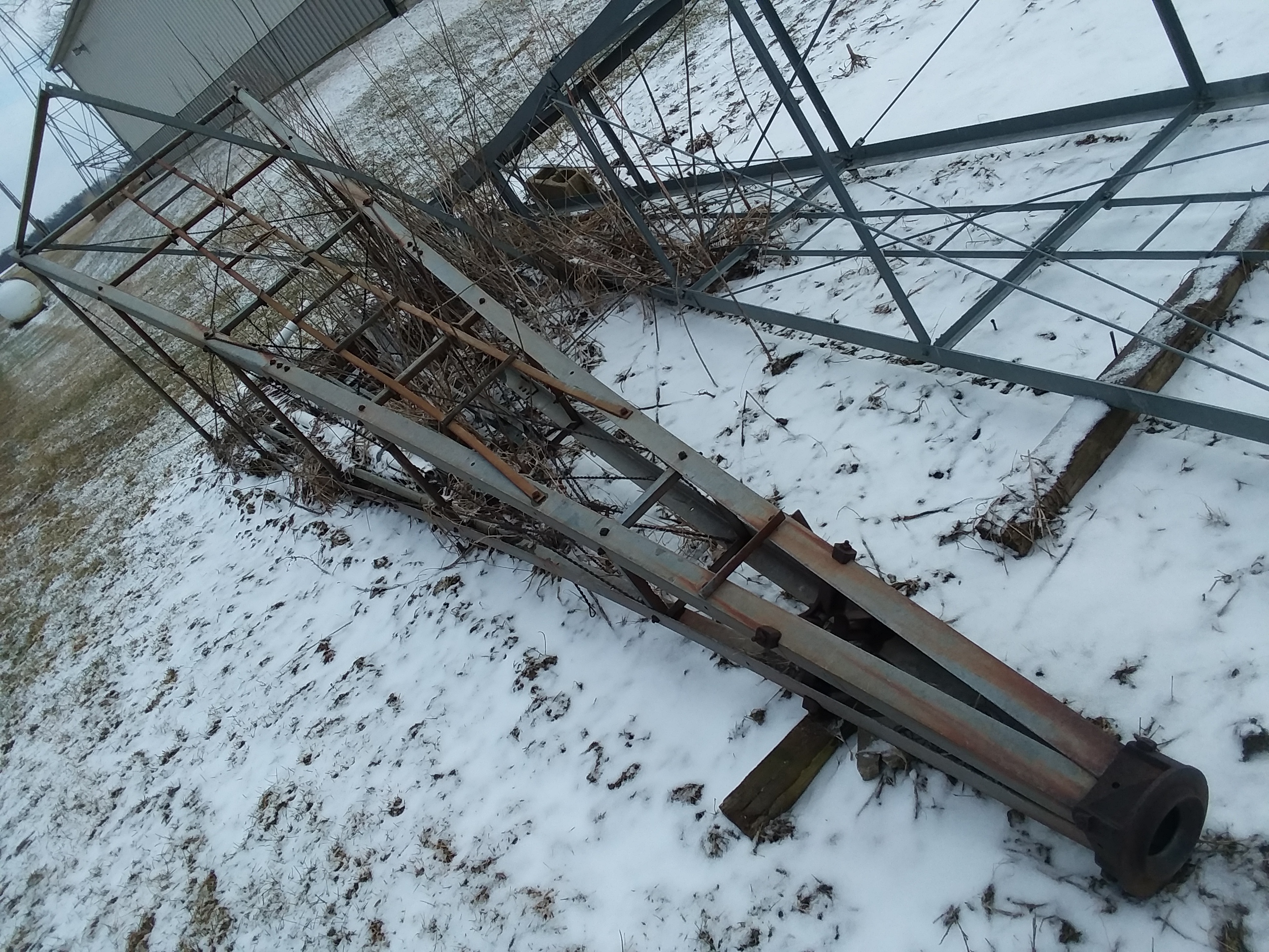 8′ A702 Aermotor with 40′ Tower. Rustic Windmill right off the farm. Tower is interesting because it has wider spread than usual. Complete windmill selling “as is” condition. Two blades are broken off but spares are included. All parts included but needs some work. Anchors and platform not included.
