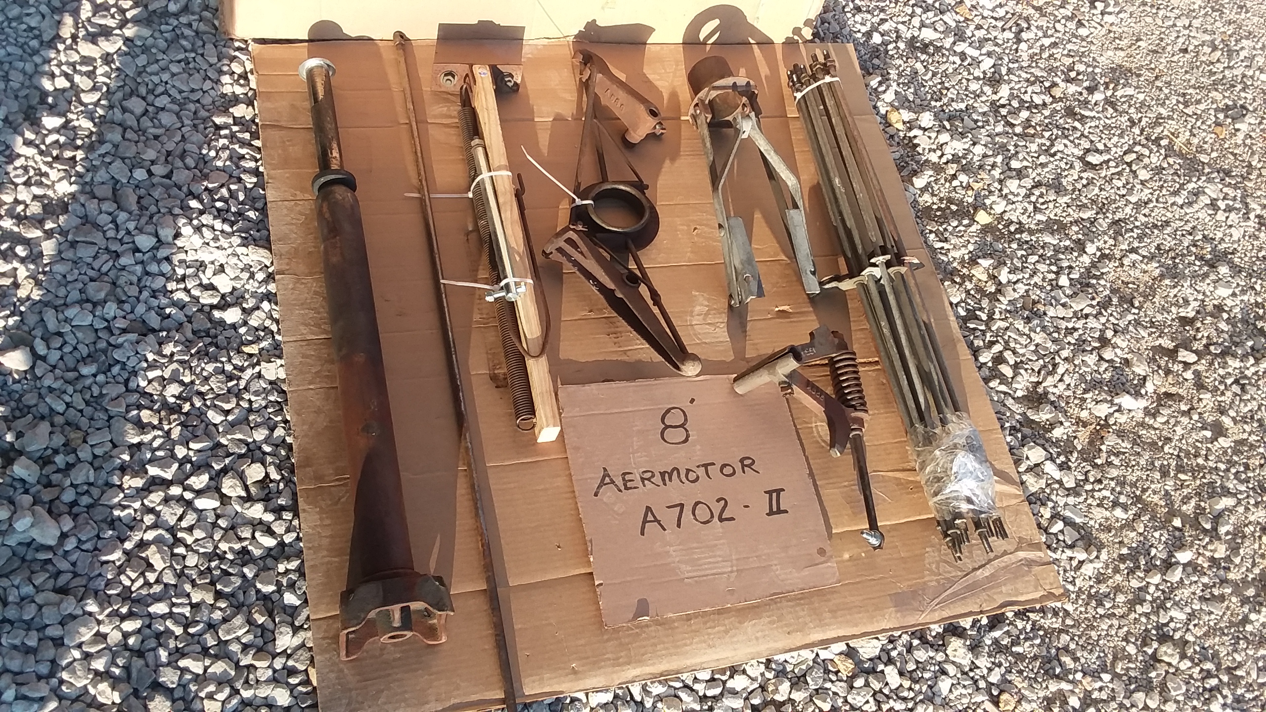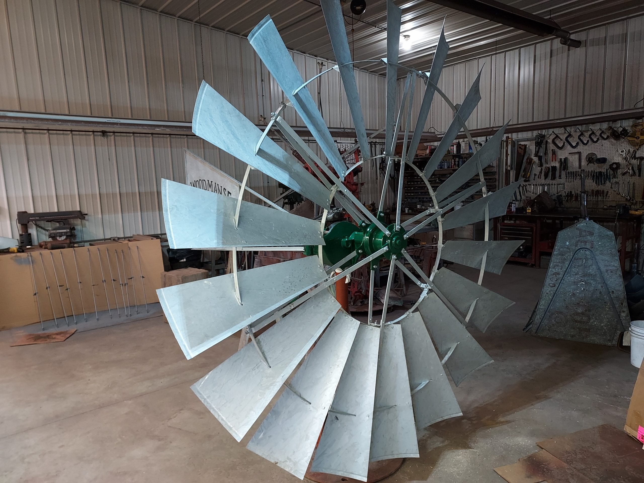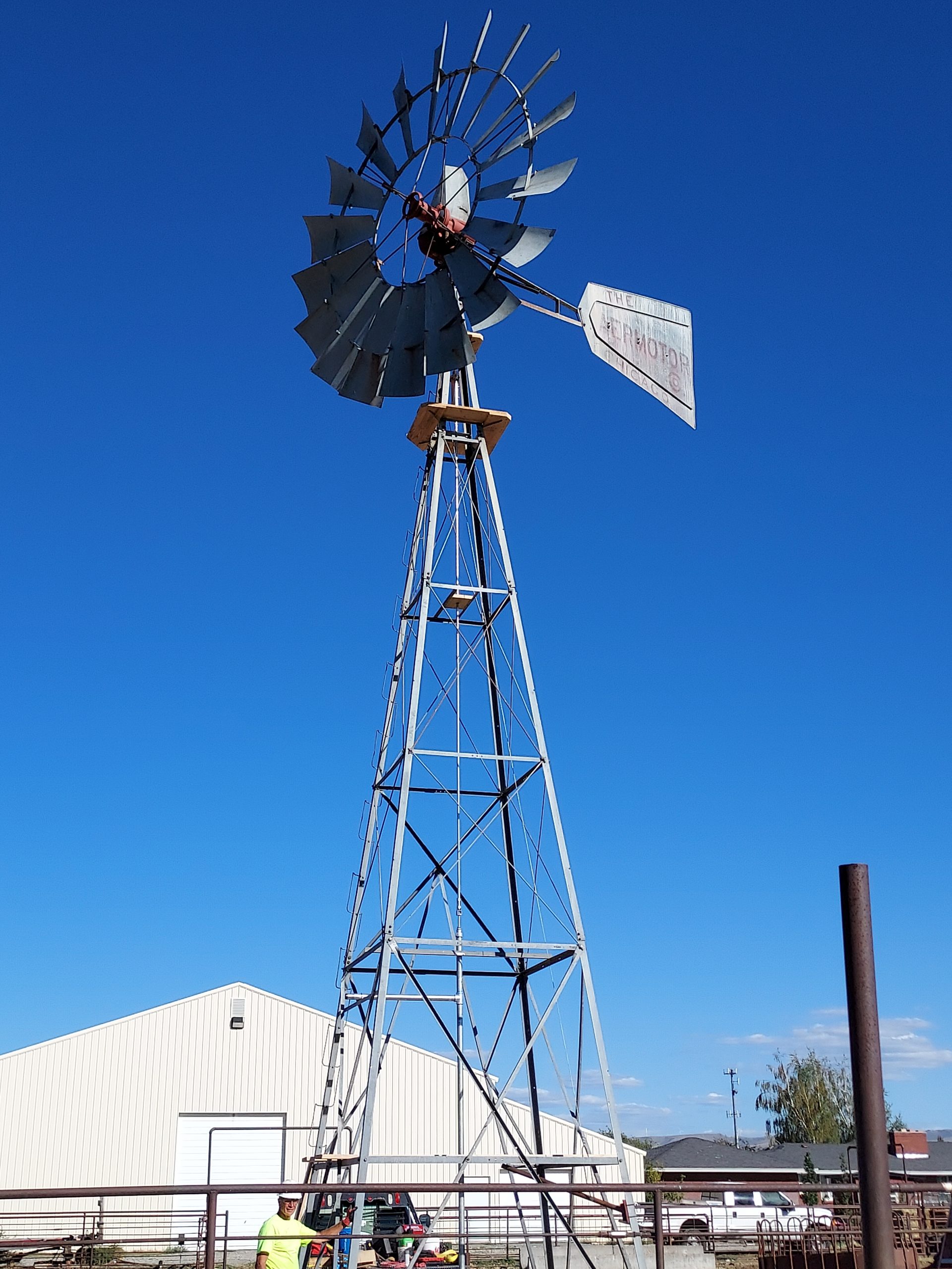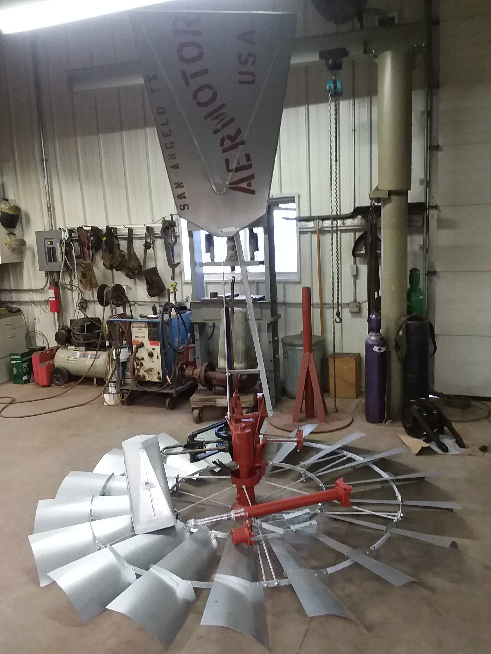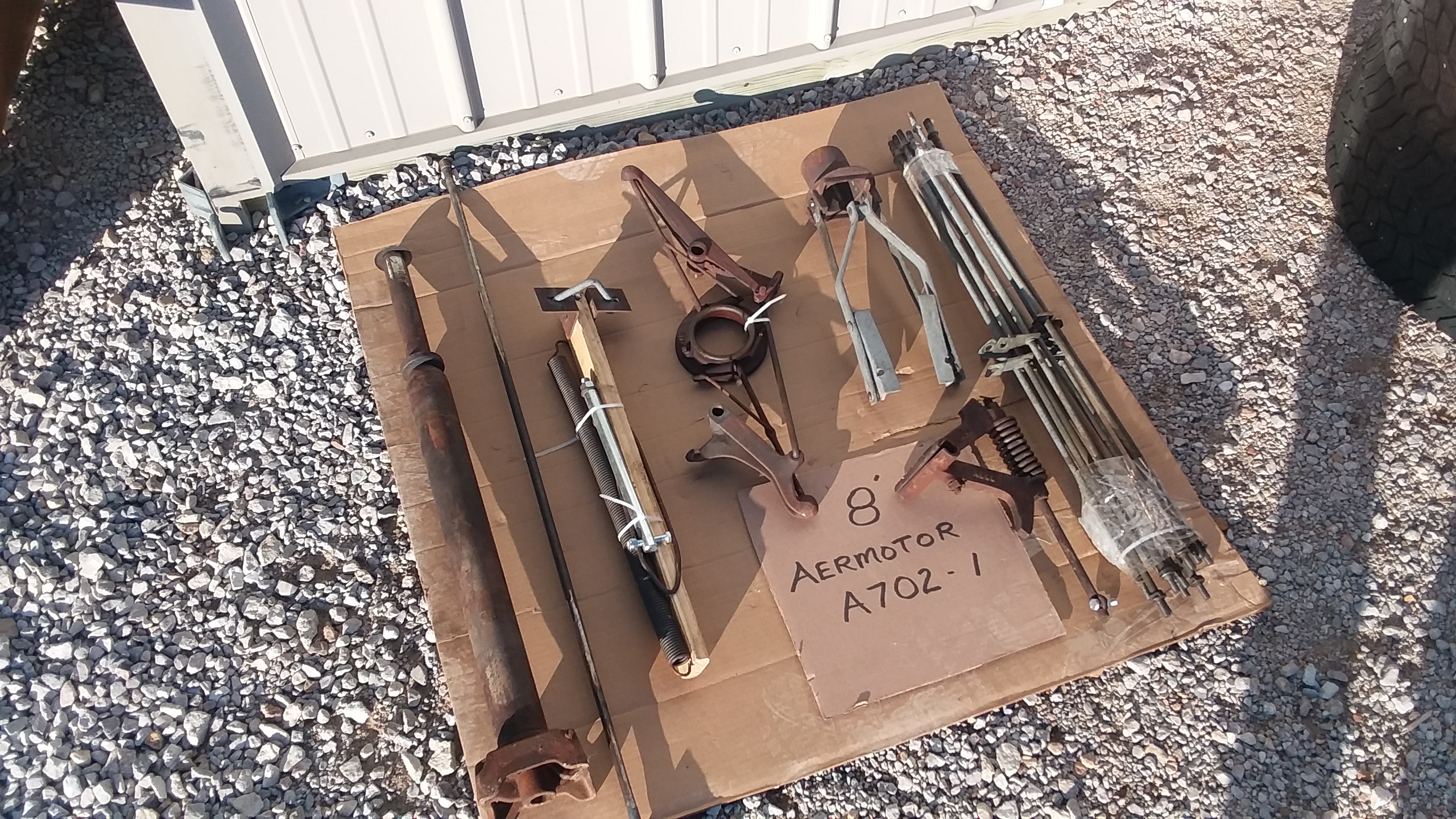 7) – 8′ A702 Aermotor. 100% professionally rebuilt. This is the most reliable and best built windmill in the world. 100% complete windmill with lots of new parts. New hot galvanized wheel / tail / hood. Includes new mast pipe, furl lever, instructions, and 5yr warranty. Does not include tower. Can provide with optional painted old Chicago Aermotor logo (both sides) for additional $100…. $3600.