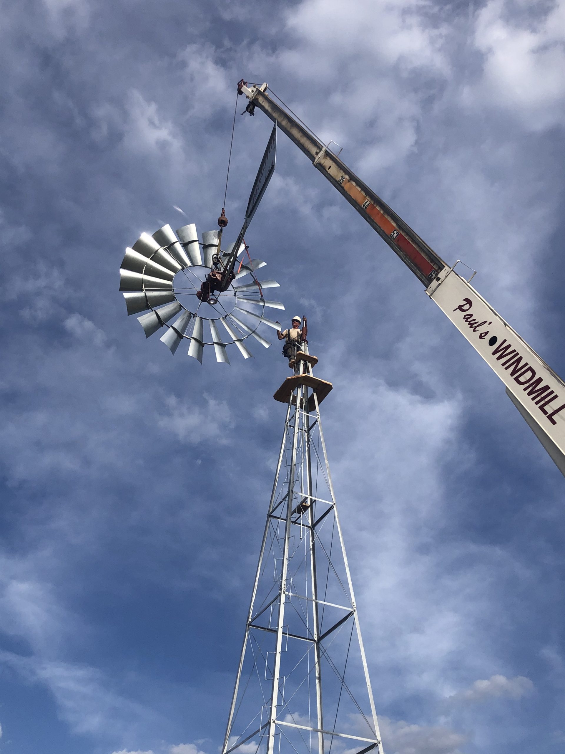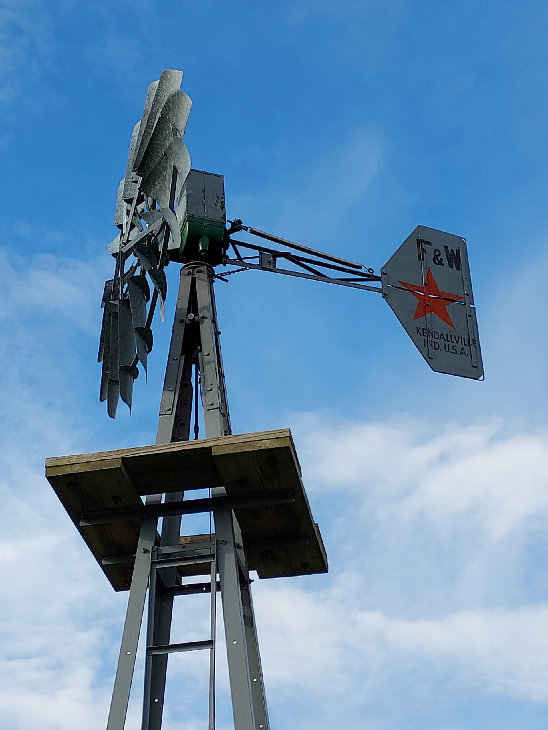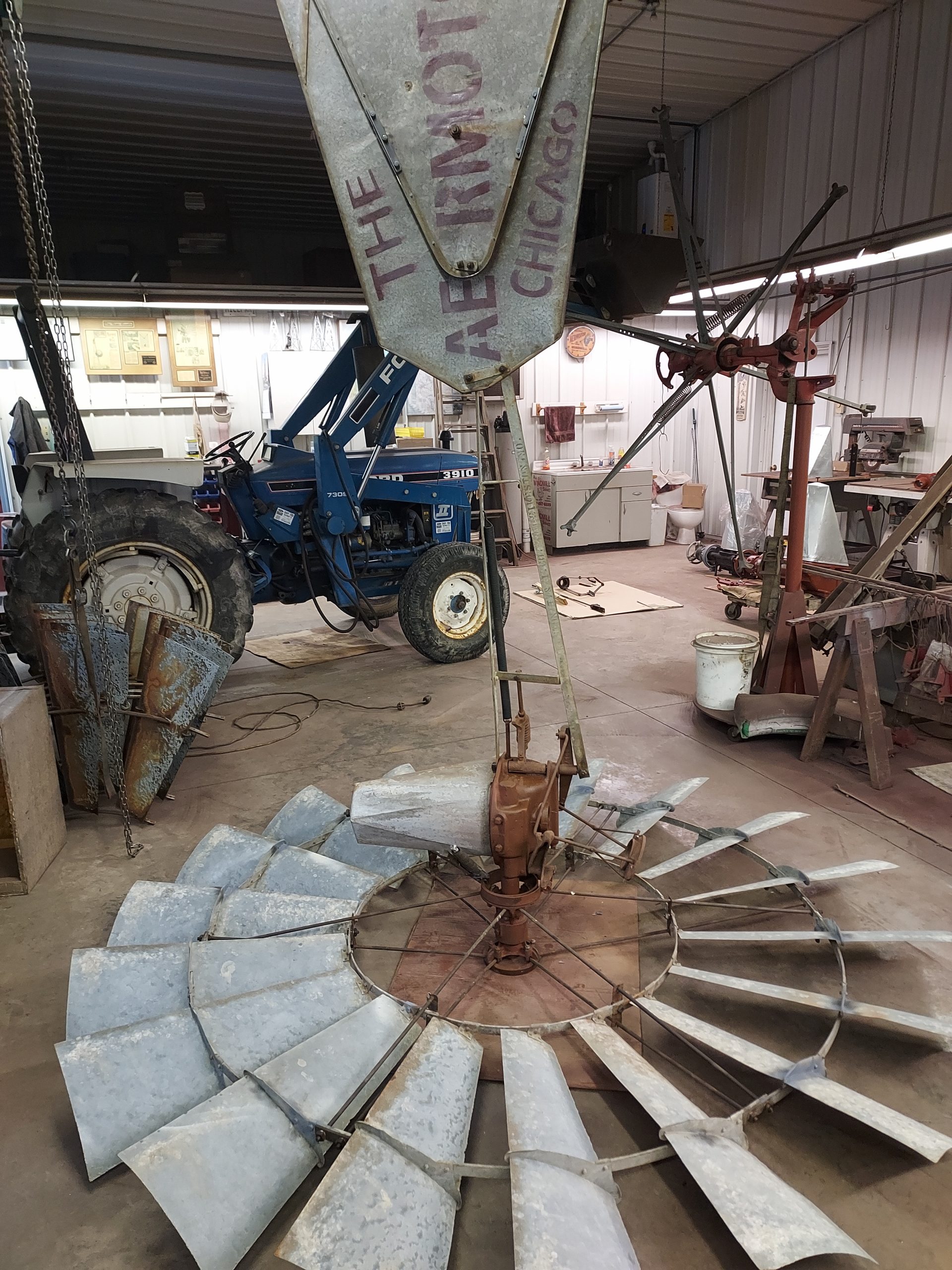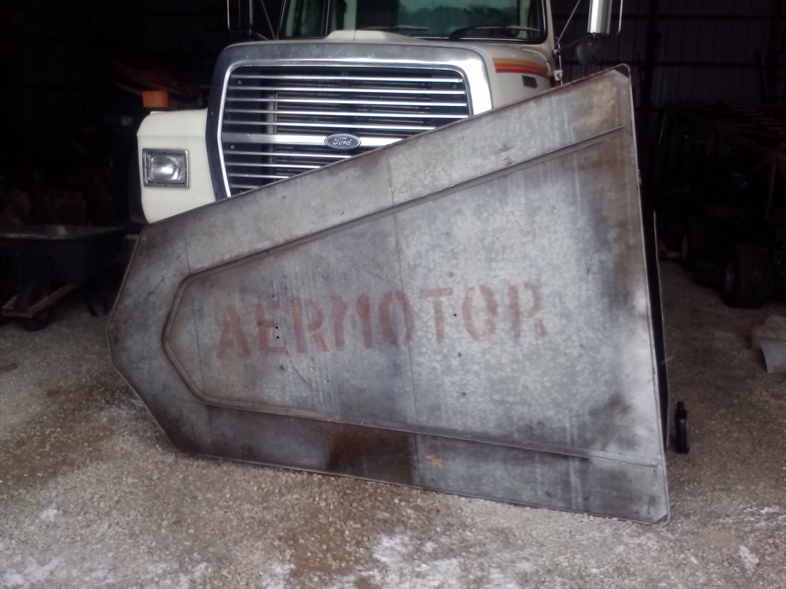 7) – 8′ A702 Aermotor. 100% professionally rebuilt. This is the most reliable and best built windmill in the world. 100% complete windmill with lots of new parts. New hot galvanized wheel / tail / hood. Includes new mast pipe, furl lever, instructions, and 5yr warranty. Does not include tower. Can provide with optional painted old Chicago Aermotor logo (both sides) for additional $100…. $3600.