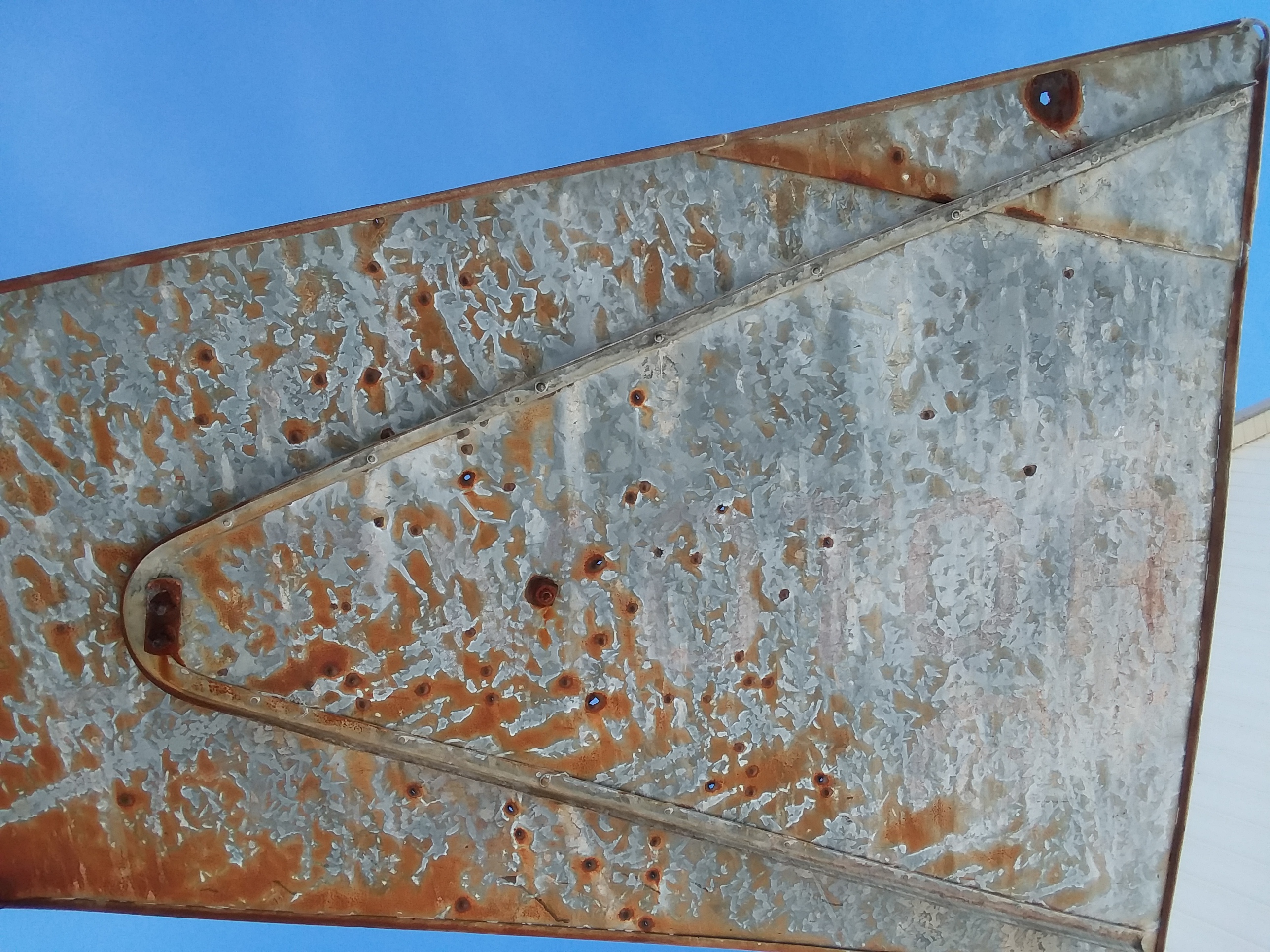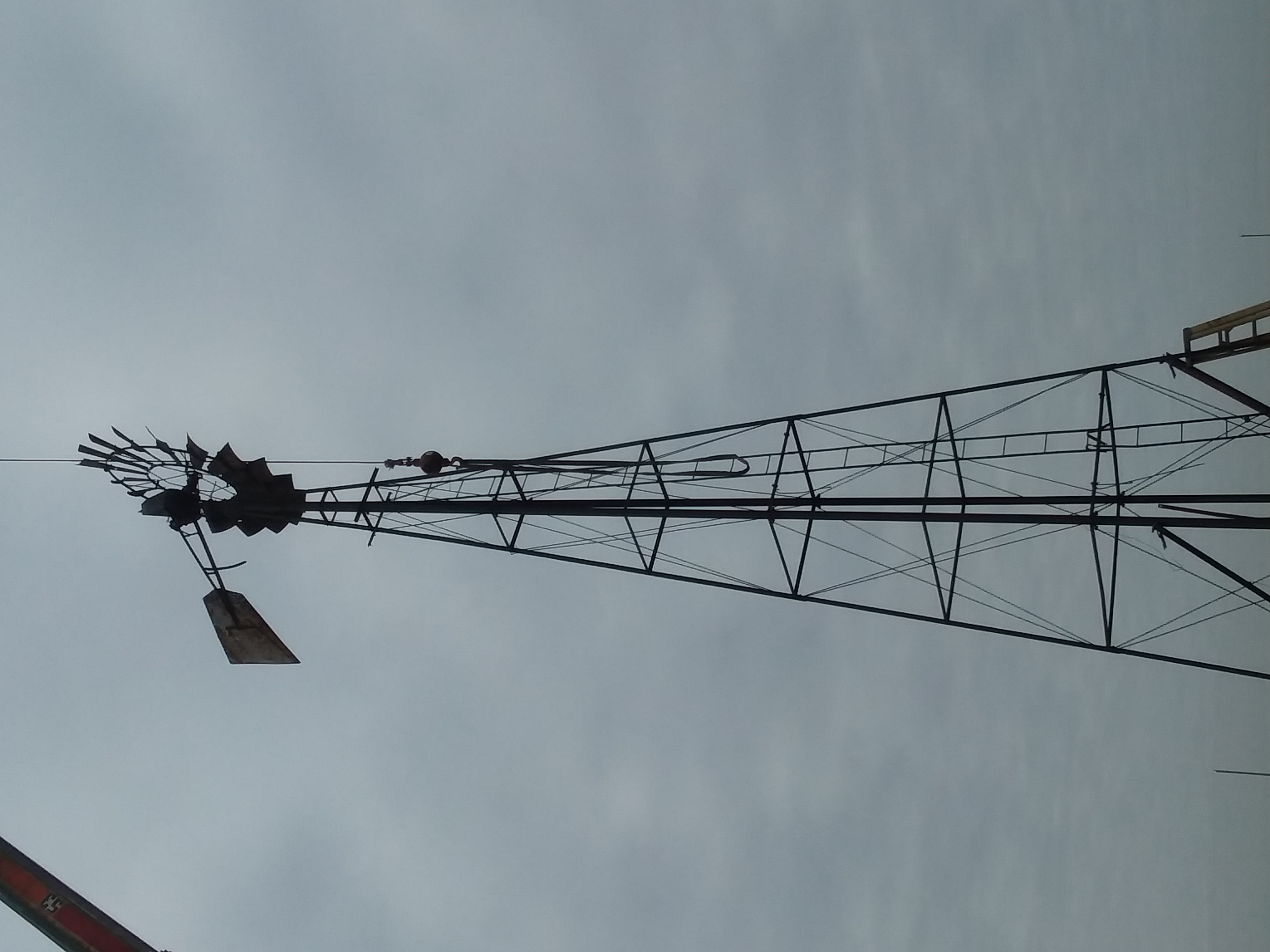 8′ Aermotor A702 w/40′ 3-post Tower. Good, used complete windmill in runnable condition. Good brake. Has old silver paint and rust. Blades are solid and straight. Tail vane has couple tears but can be repaired. Tower is 40′ tall and straight. Does not include anchors or service platform.