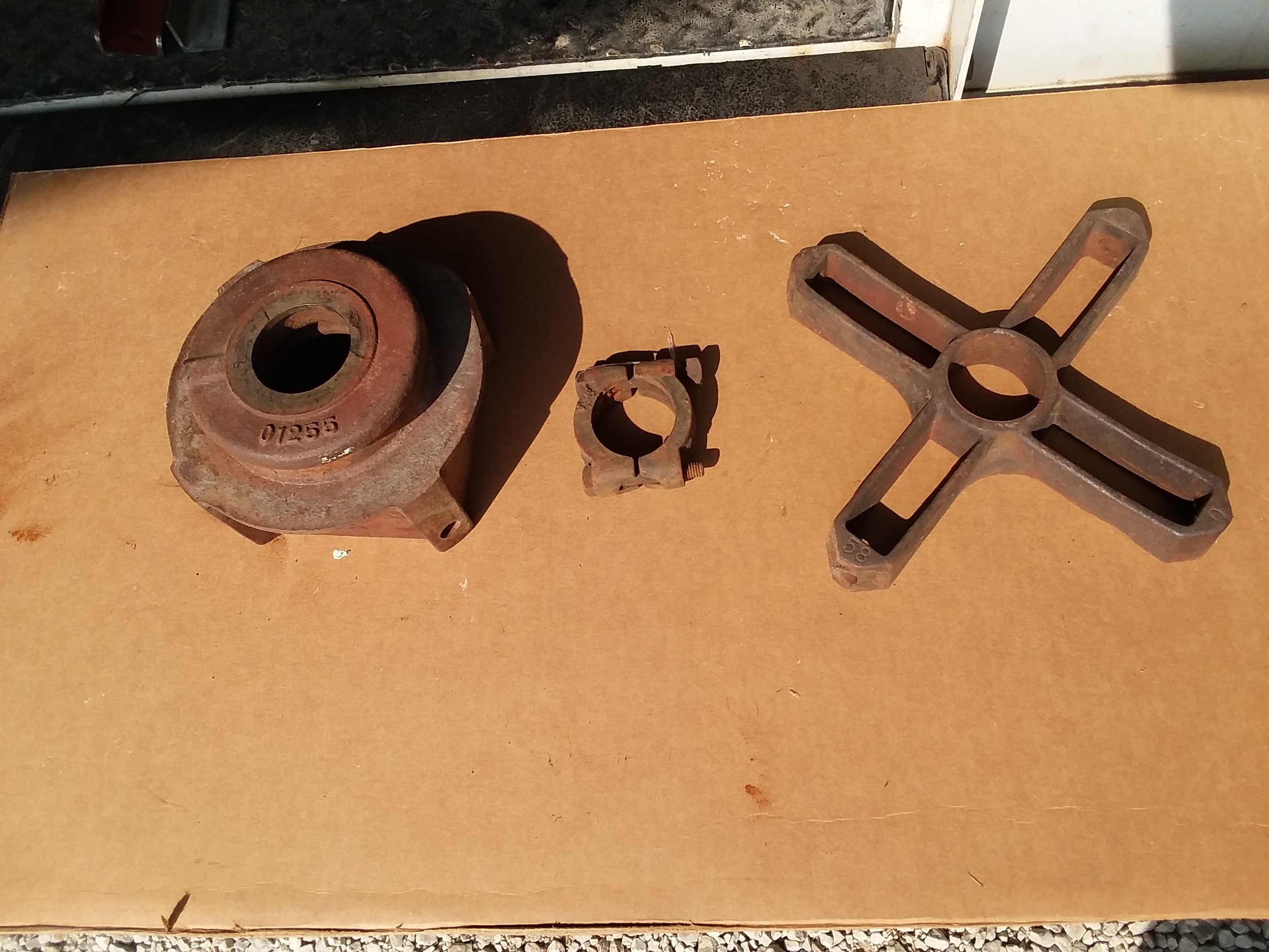 Rustic, used 10′ WD Baker-Monitor Windmill Head (no tower). Well used, very rusty windmill. Motor had oil in it when I took down fall 2018. I believe mill to be complete but needs to be rebuilt. This type of windmill uses simple bronze “half” bushings which can be easily made. This is a “Pull In” style mill”. Includes; motor (no cracks or welds), wheel, spokes, tail stem, vane, stub tower, pull-out device, tower castings. Great project mill!