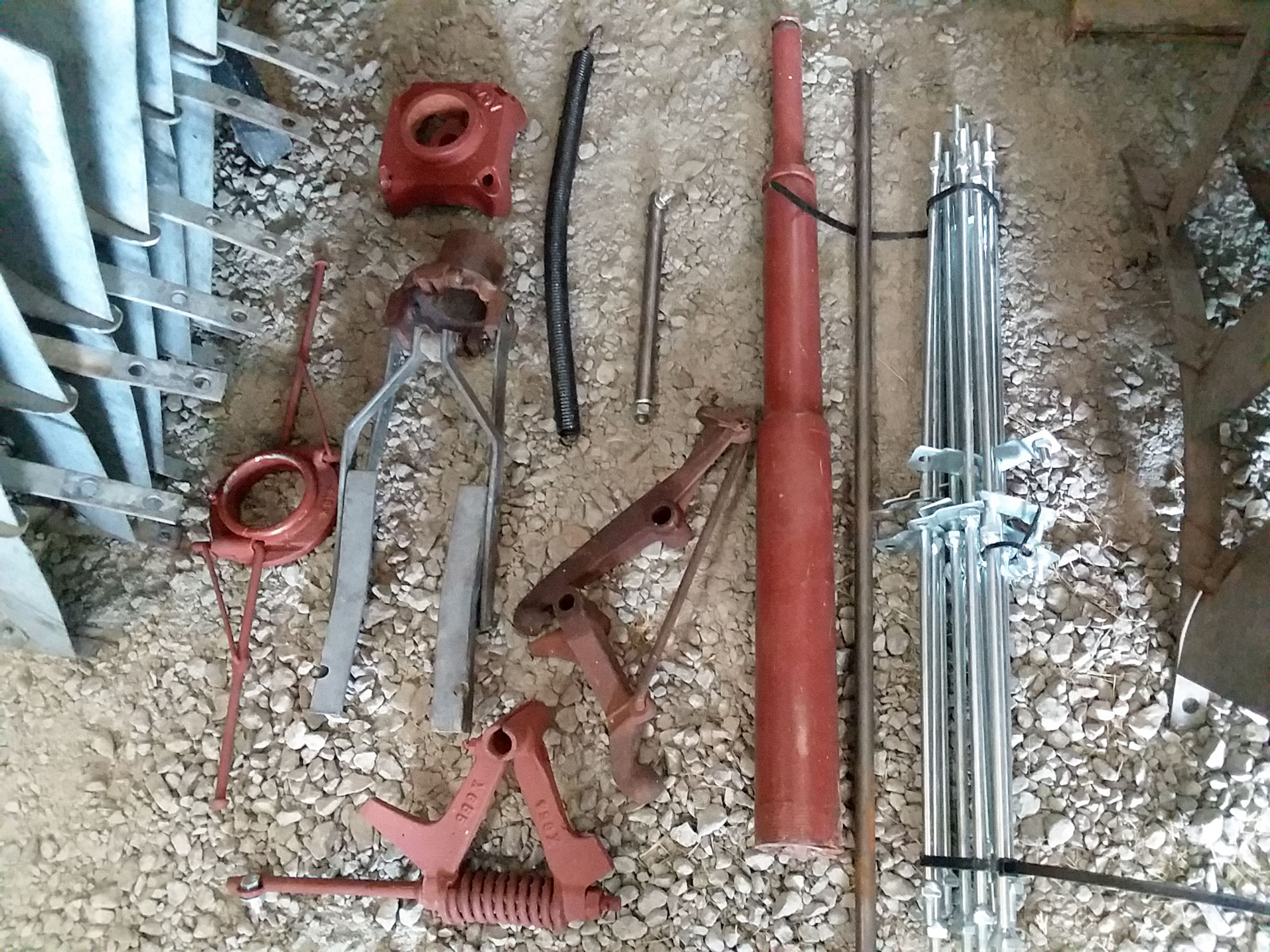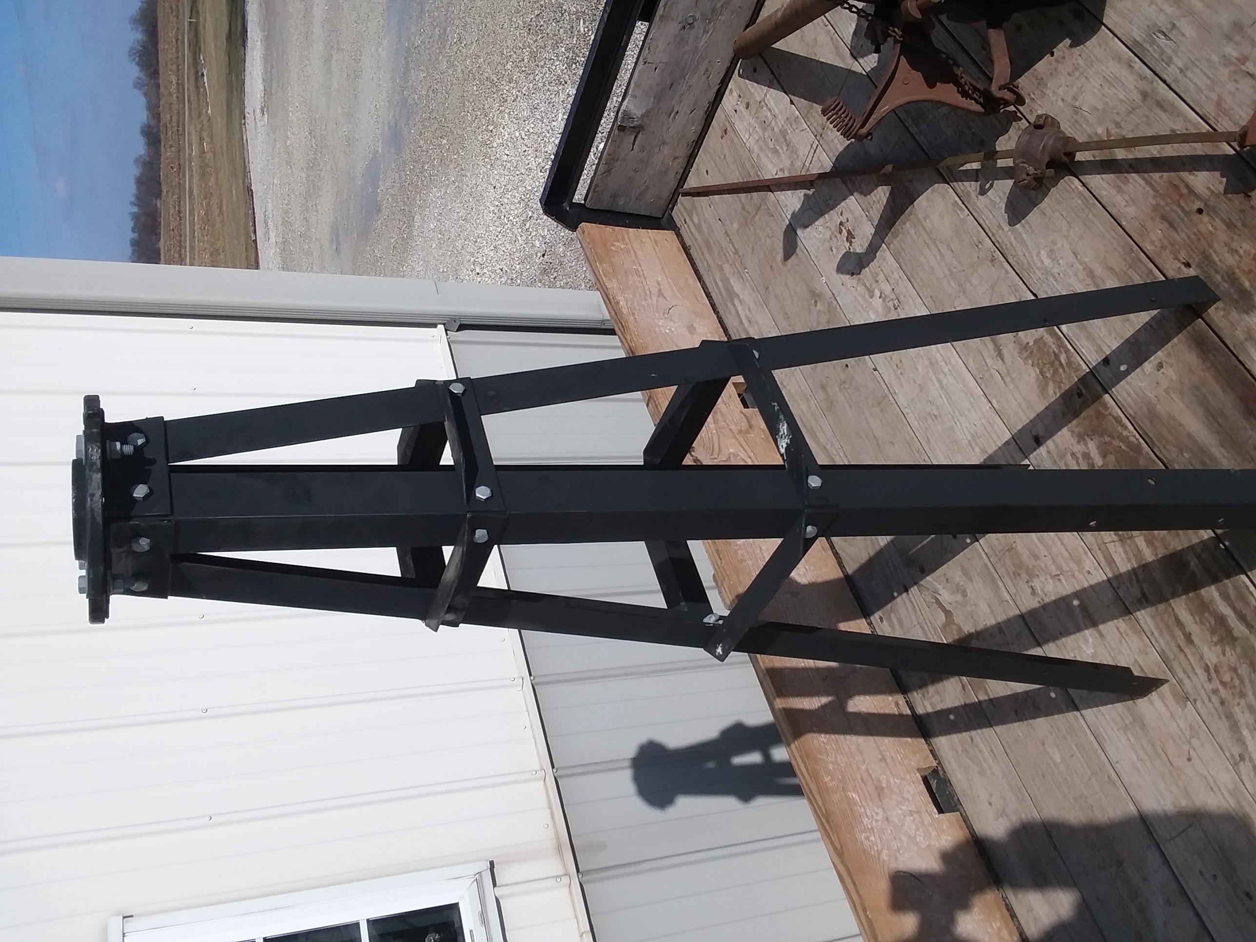 6) – 4-post Towers – Aermotor style-NEW. USA made. For 6′-8′ Aermotor windmills. Hot galvanized, includes new wooden ASH service platform, new anchor posts, ladder, galvanized bolts, and all hardware. Available heights; 21′, 27′, 33′, 40′, 47′, 54′, 60′, 67′. Call for current availability and pricing. Optional galvanized steel service platform available for additional charge.