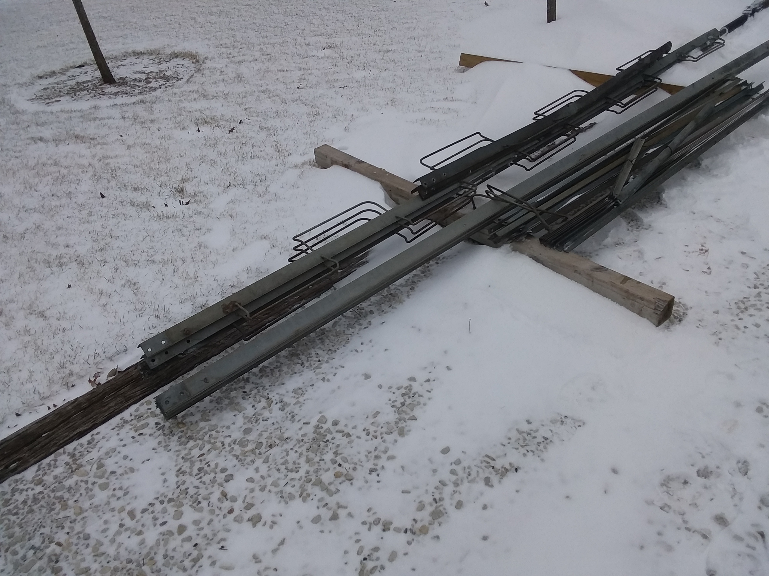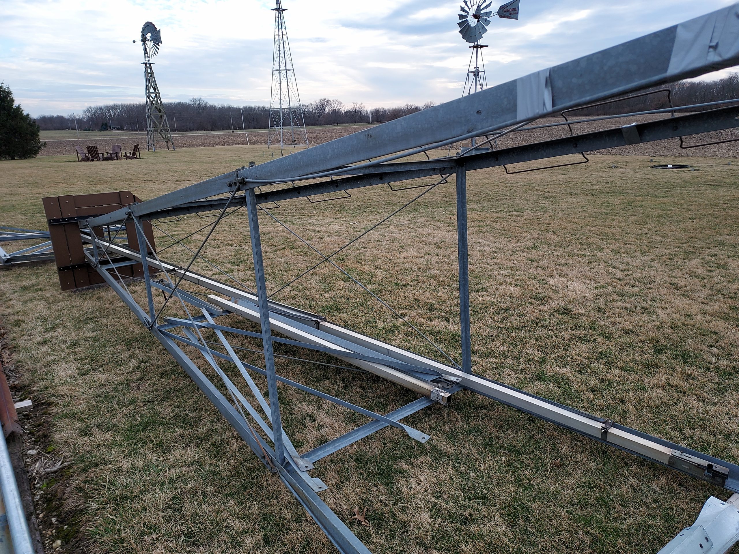 8′ WC-Long Stem Monitor, with vintage 33′ 4-post Tower. Windmill was originally made in Evansville, WI about 1934. 100% professional rebuild completed 2018, including new main bearings/shafts, turntable bearings, brake assembly, new galvanized blades/tail vane. Tower has GREAT weathered galvanizing (very little rust), solid oiling platform, galvanized bolts, and ladder. Runs perfectly with good brake. Mill was taken down due to property sale. Complete running windmill with matching 33′ tower…VERY NICE!