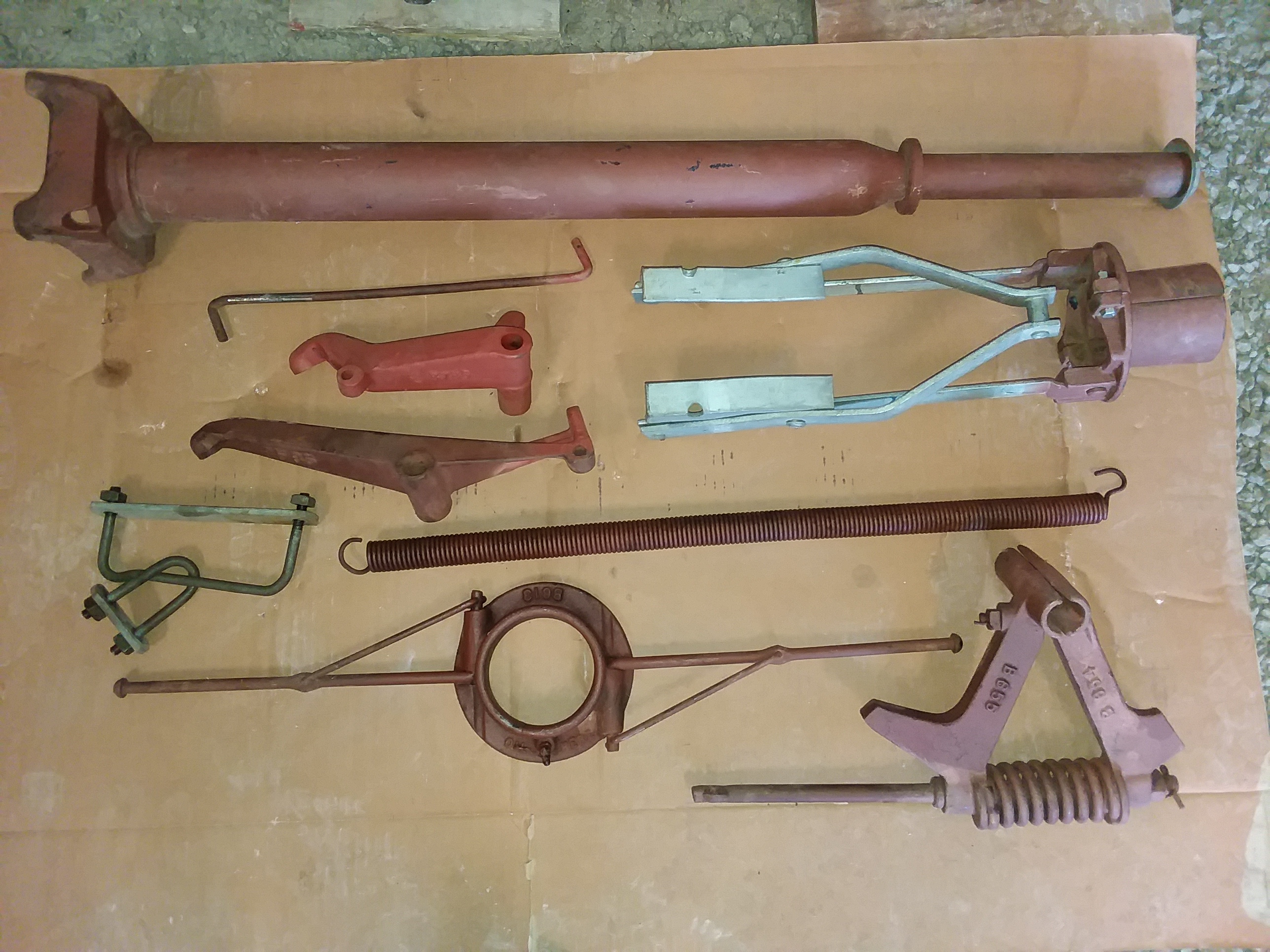 12′ D702 Aermotor Windmill w/ 33′ Tower. Complete Vintage windmill in used but very good condition. Includes all good usable parts including; mast pipe, furling linkage, brake, furl lever, buffer assy, pump rod, spring, spokes, tailbone, brake handle, & bolts. Original hood, blades, and tail are very good condition with very good original galvanizing. Original 33′ Tower (w/bolts) is disassembled, and in very good condition. Delivery and professional installation available. Photo of erected windmill is file photo of similar mill 12′ x 40′ tower