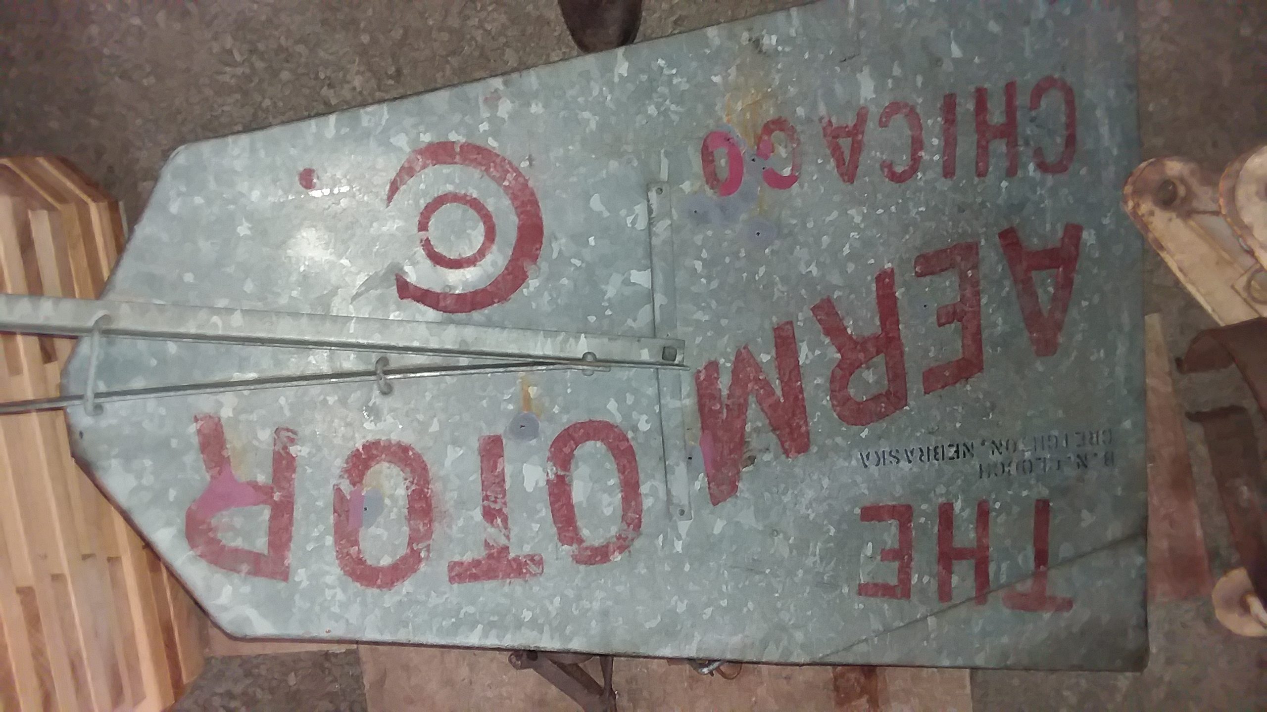 12′ D702 Aermotor w/33′ Wide spread tower. Nice original vintage windmill. Nice tail lettering. Complete. professionally rebuilt.
