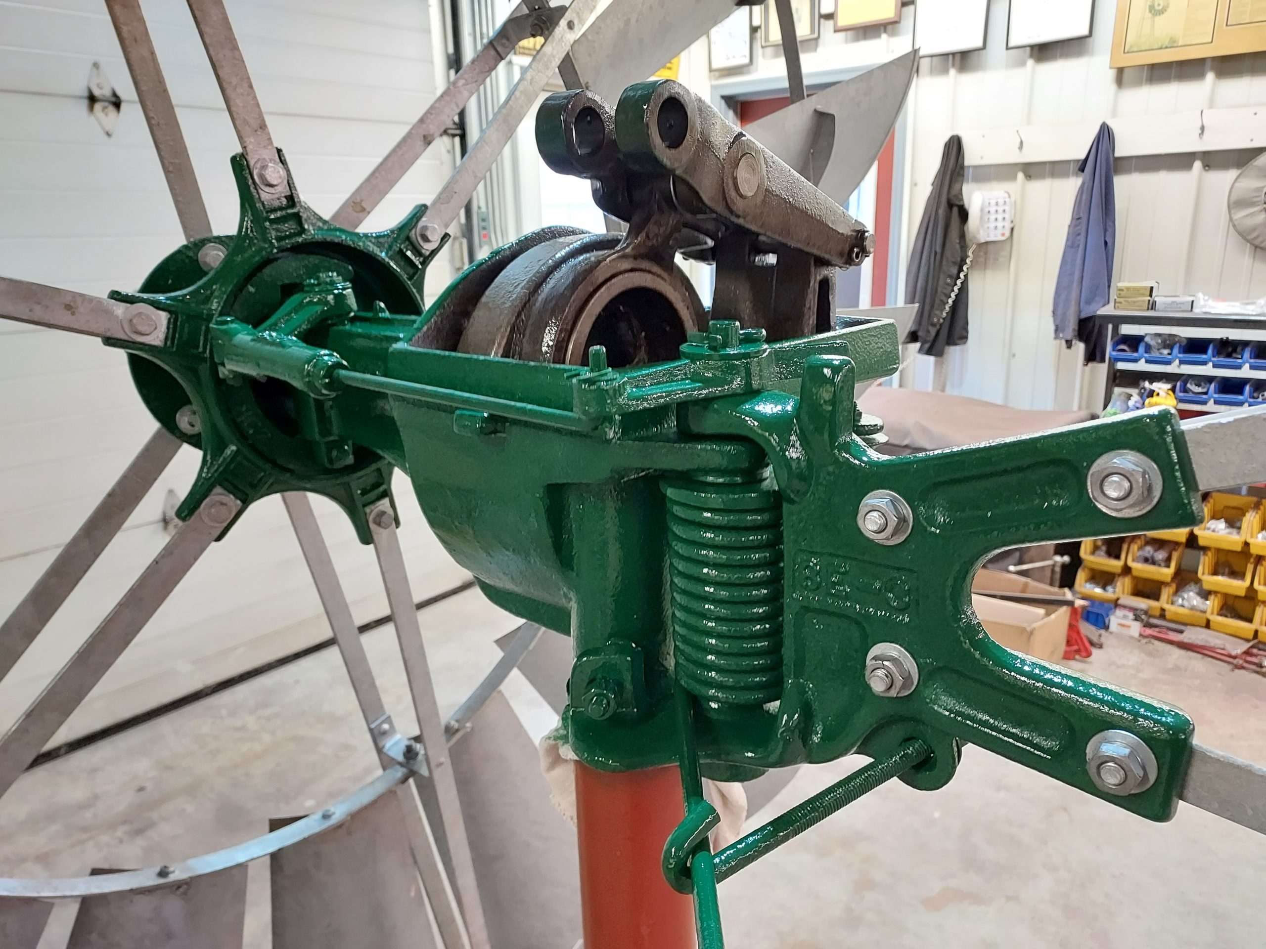Large 16′ F702 Aermotor Windmill w/ 40′ Tower. Complete windmill has been professionally rebuilt including all new bearings. Includes all good usable parts including; mast pipe, furling linkage, brake, furl lever, buffer assy, pump rod, spring, spokes, tailbone, brake handle, & bolts. Original blades and tail are like new with excellent galvanizing. Original 40′ Tower (w/bolts) is disassembled, and in near perfect condition. Delivery and professional installation available. Cannot ship.