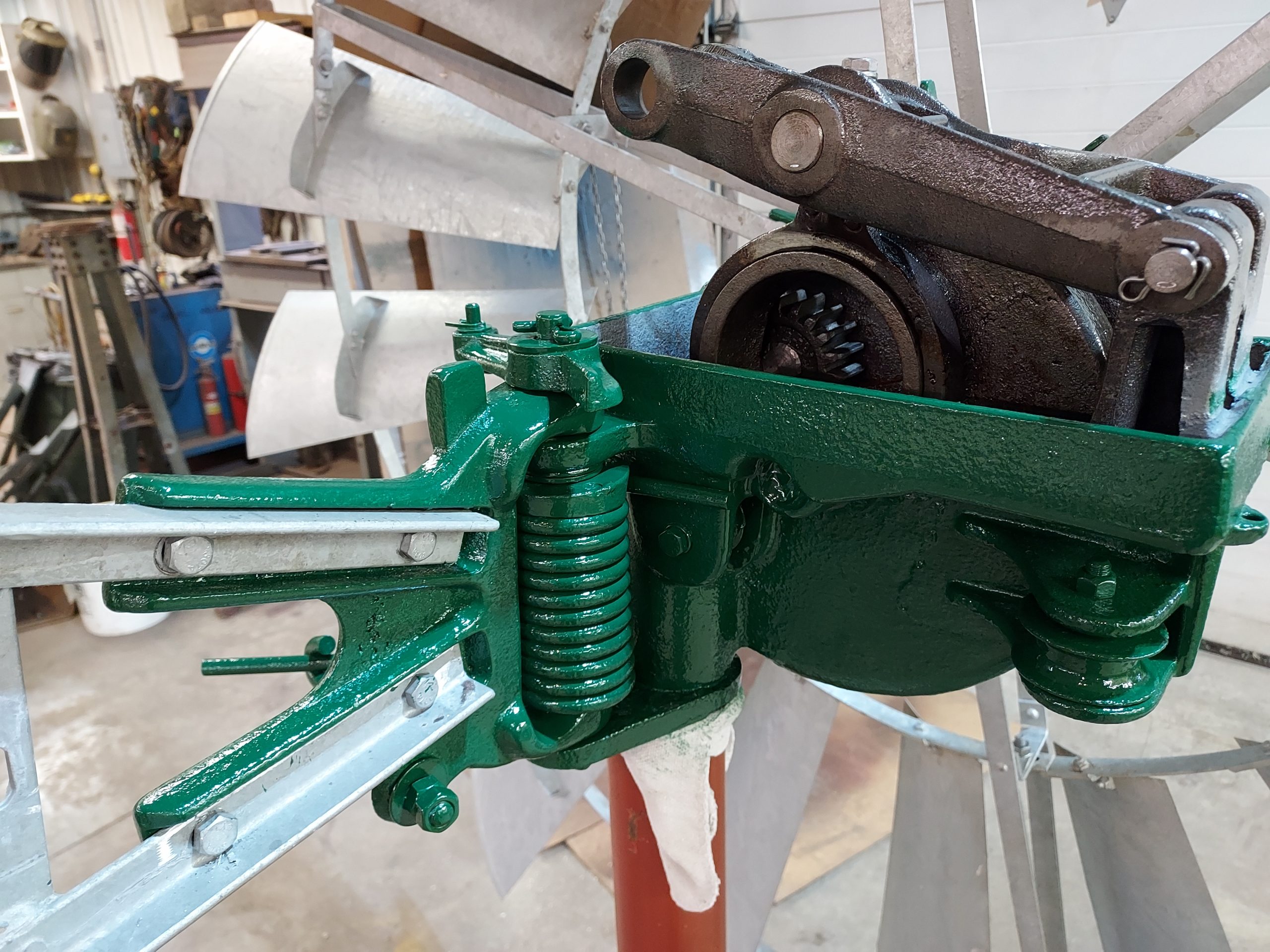8′ Woodmanse GB Windmill. 100% professionally rebuilt. New bearings, shafts, brake, new hot dipped wheel & tail. Includes tower castings, tower top bearings, pump rod, & pullout device.