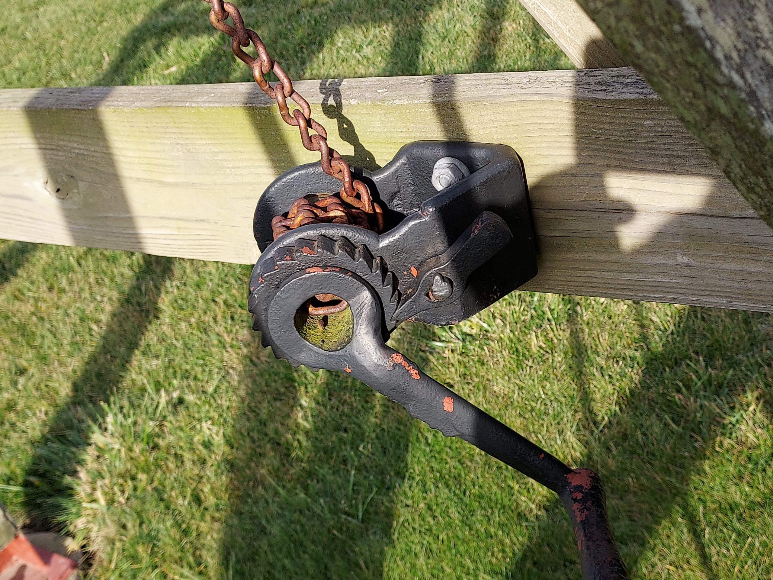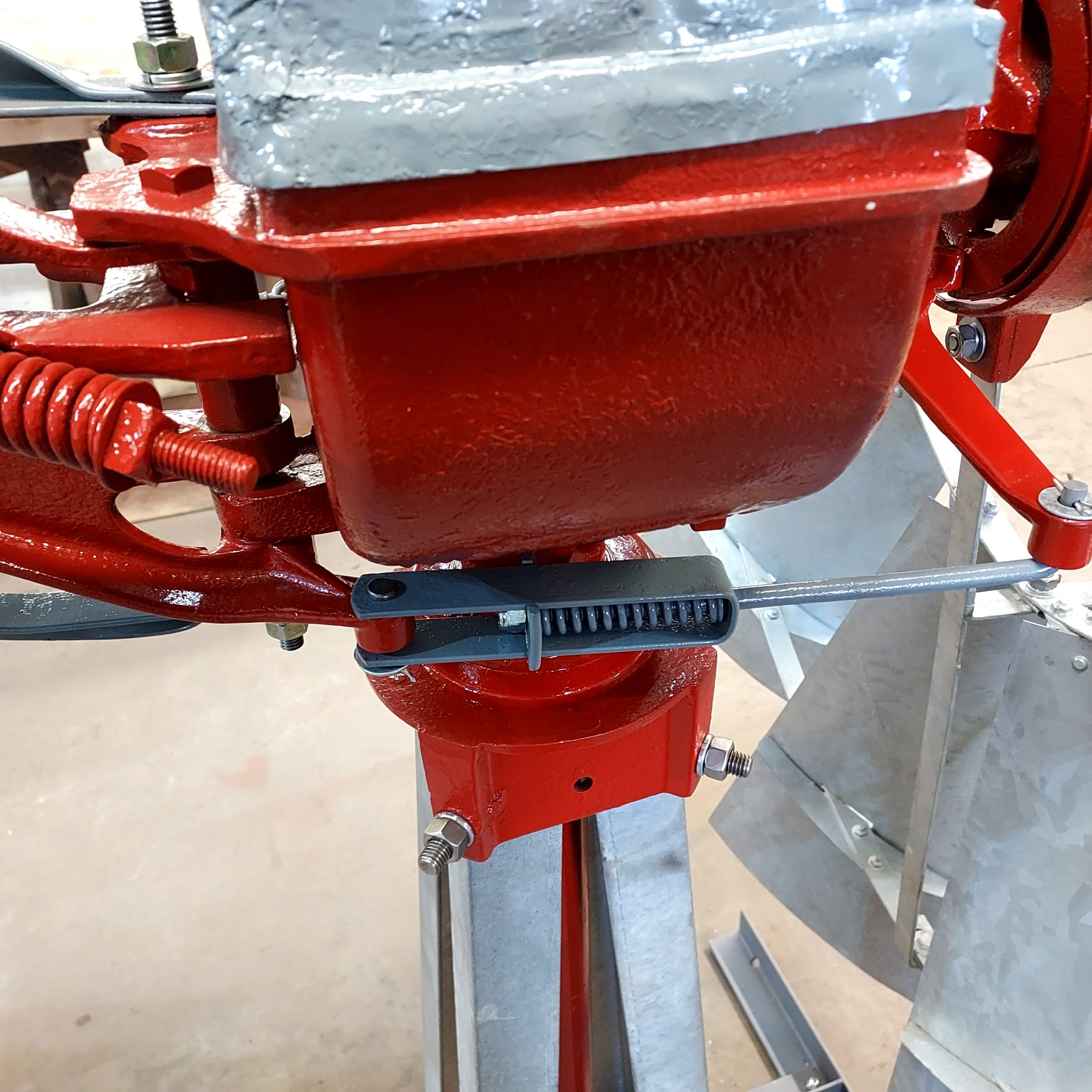 10′ Flint & Walling Model Steel Star with 30′ Wooden Tower. Good bearings and working brake. Ran very little since professional 100% rebuild. Rare Direct Stroke. Has 40lb governing weight and original working windlass (pullout) winch. This vintage windmill was originally new in 1885! Smooth runner!